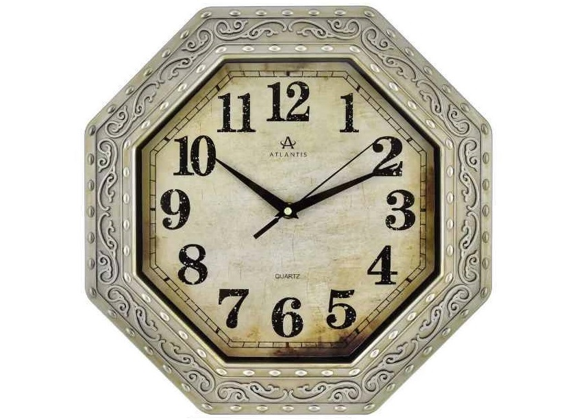 Часы настенные Atlantis 46*37 TLD-35189A серые с золотом