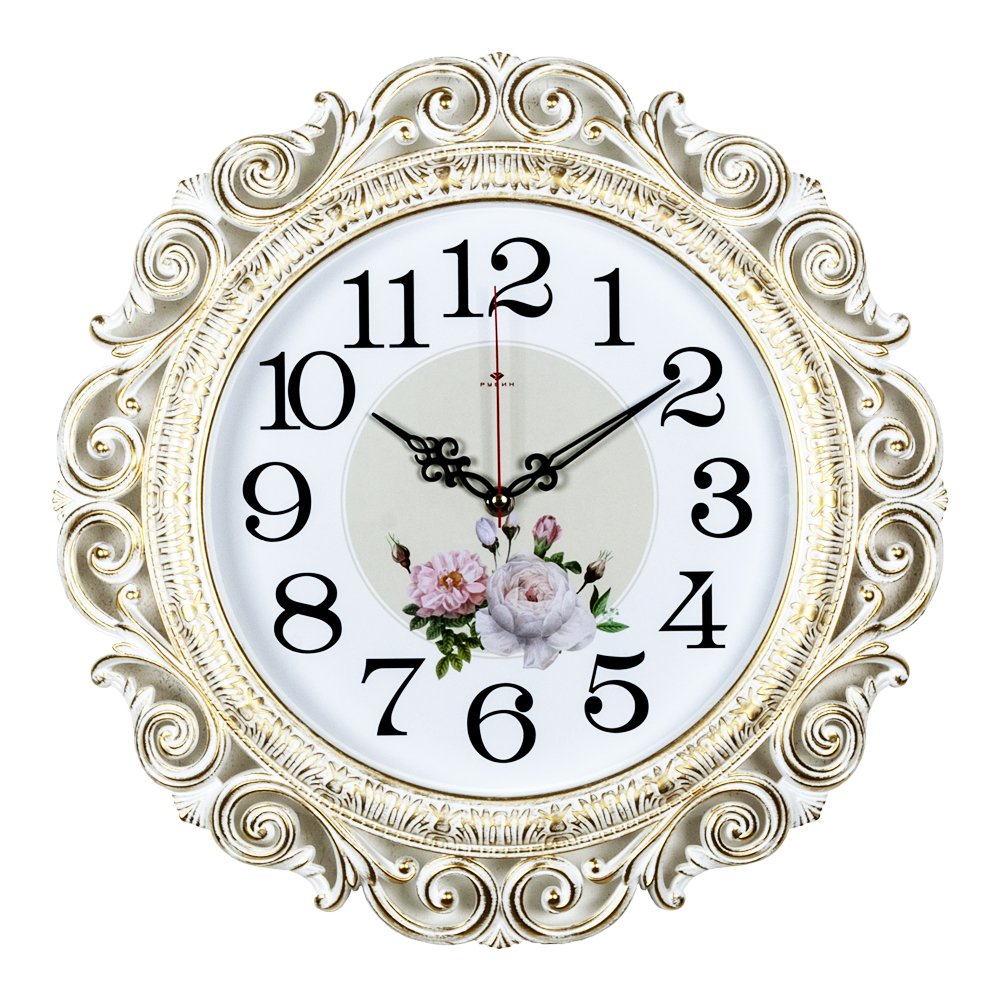 Часы настенные "21 Век" 28,5*28,5 2950-108 Садовые розы белые с золотом круглые