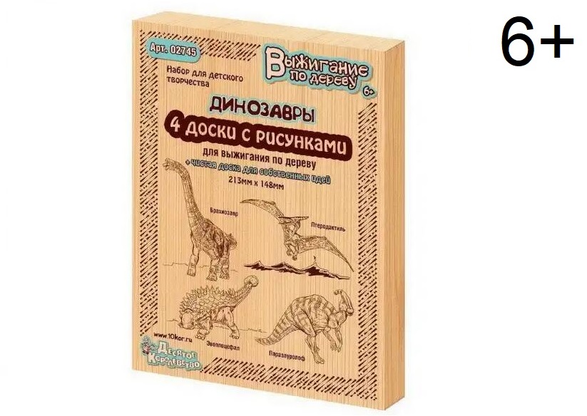 Выжигание в рамке 02745 Брахиозавр, Птеродактиль, Эвоплоцефал, Паразауролоф 5шт