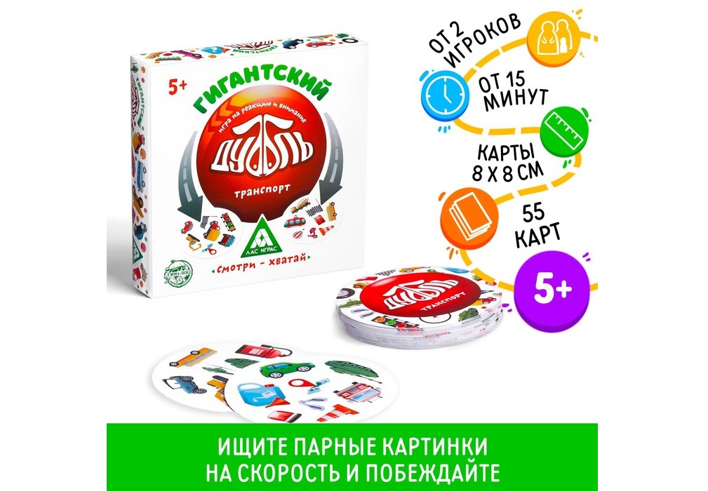 Настольная игра 4882453 Гигантский дубль. Транспорт 55карточек