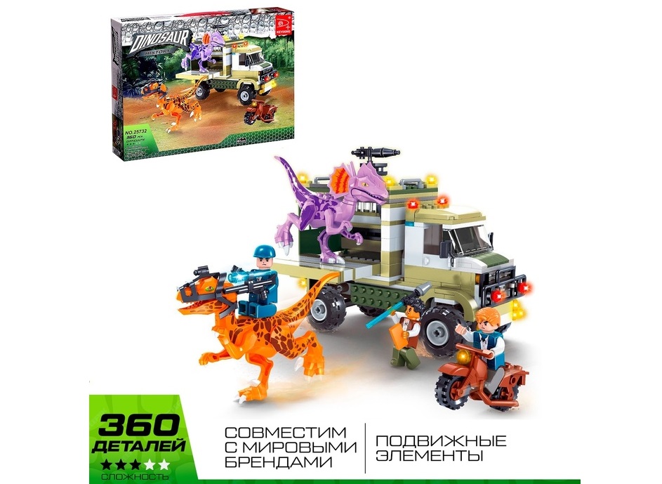 Конструктор Брик 4351972 Диноленд. Фура для перевозки хищников 465дет