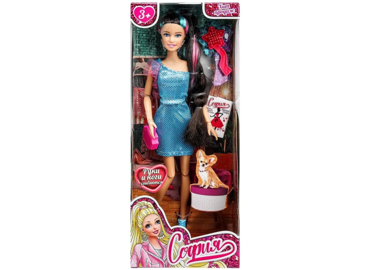 Кукла модель 66001-T7-S-BB София , руки и ноги сгиб, акс, 29см
