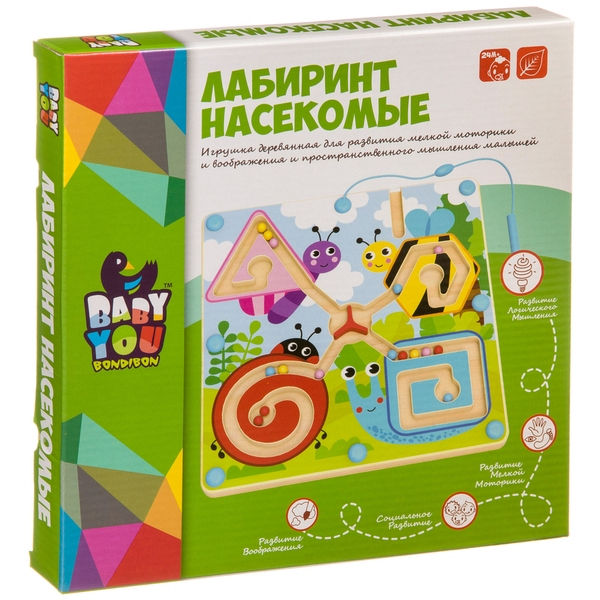 - Логическая игрушка ВВ4009 Насекомые, дерев.лабиринт
