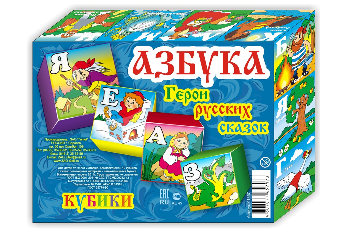 - Кубики 12шт 01357 Азбука. Герои русских сказок