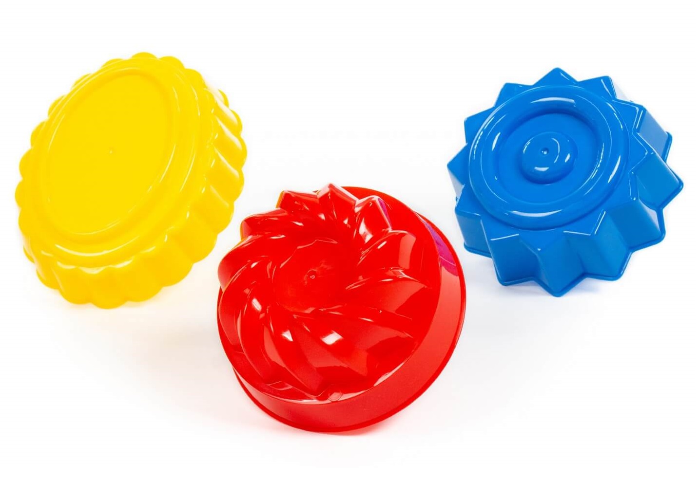 Песочный набор №10 0989 ведро, ситечко, лопатка, грабельки, 4 формочки