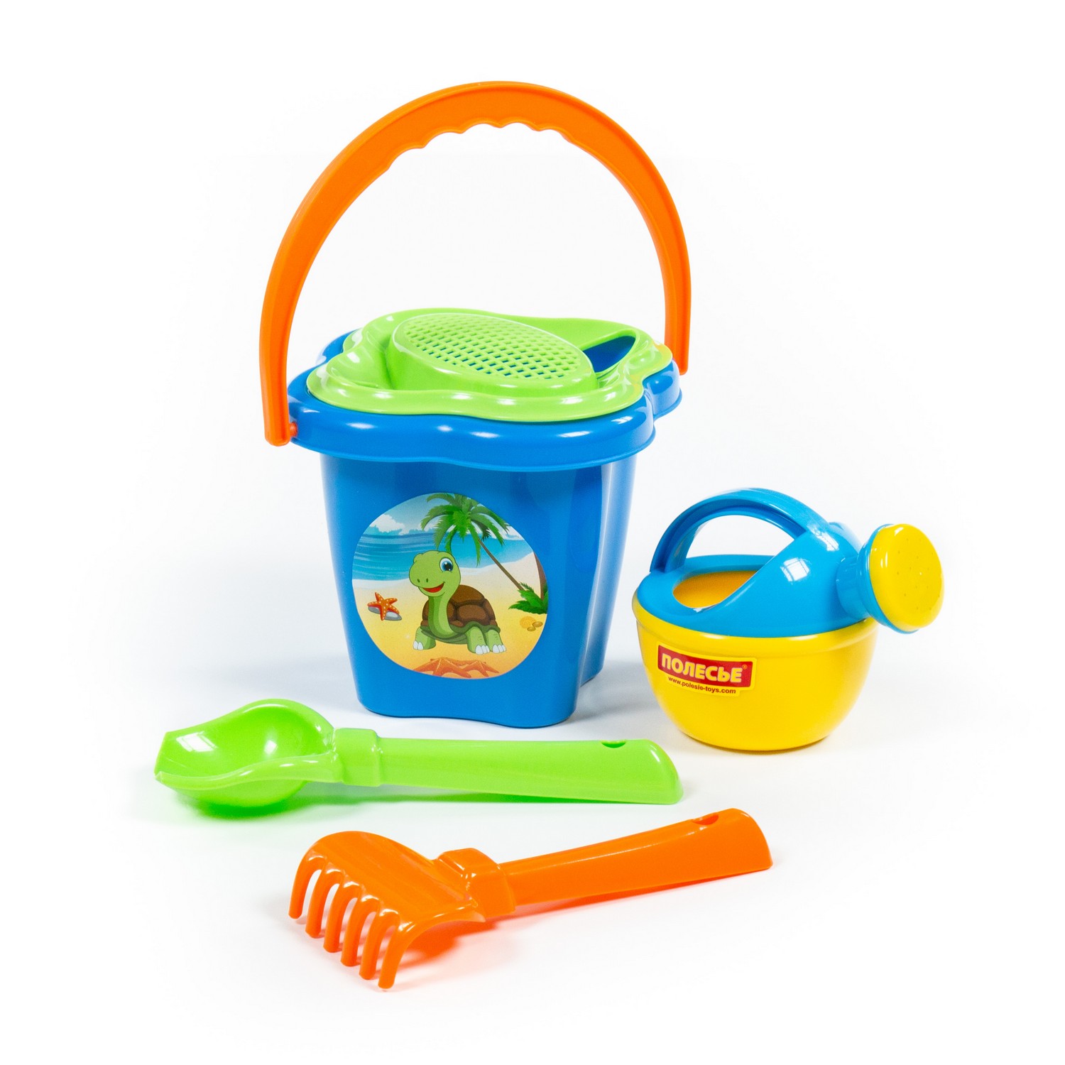 Песочный набор №10 0989 ведро, ситечко, лопатка, грабельки, 4 формочки