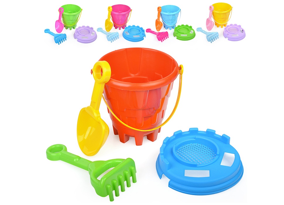 Песочный набор №229 0528 ведро, ситечко, совок, грабельки, формочки