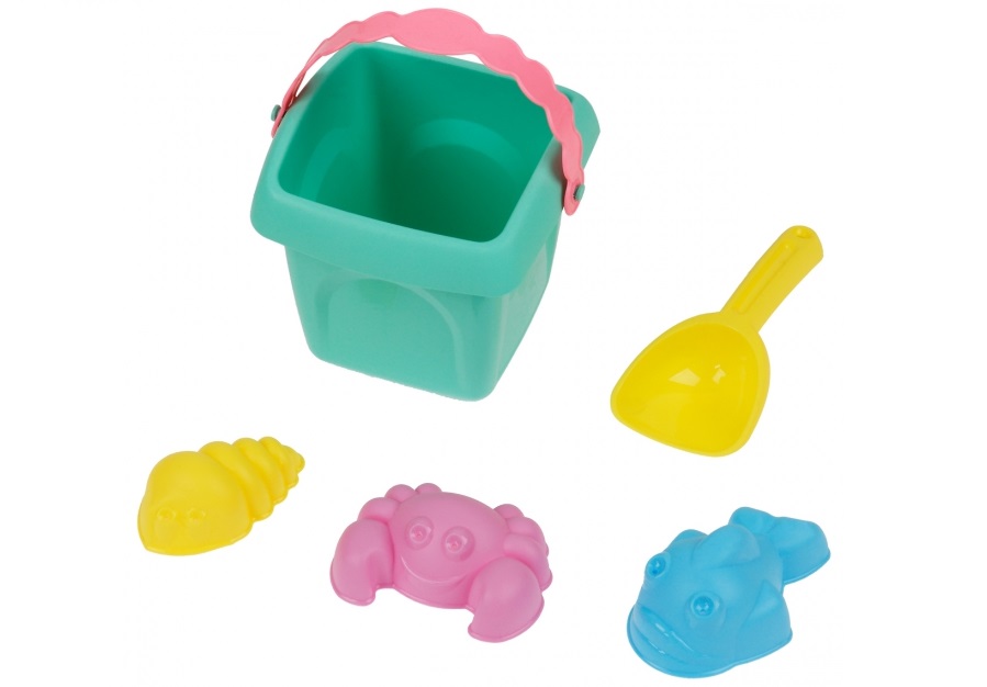 Песочный набор №10 0989 ведро, ситечко, лопатка, грабельки, 4 формочки