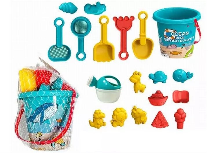 Песочный набор №229 0528 ведро, ситечко, совок, грабельки, формочки