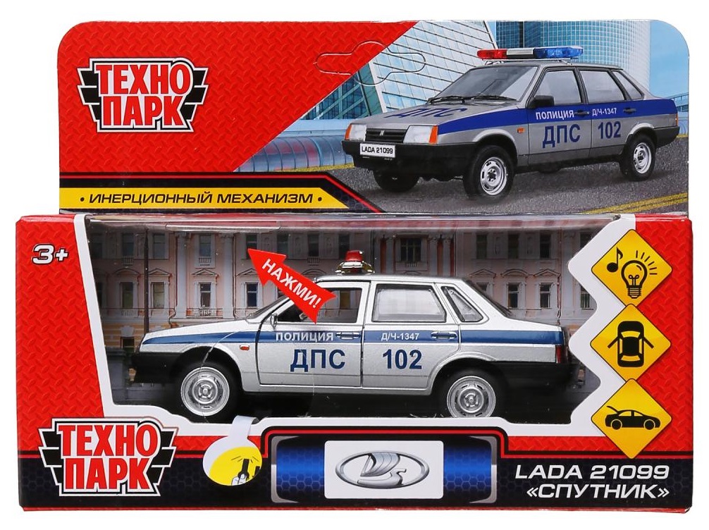 - Машина металлическая 21099-12-SR LADA-21099 "СПУТНИК" 12 см, двер, баг, инерц, серебр мет, кор.