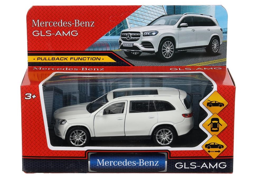 Машина металлическая GLS-12-WH MERCEDES-BENZ gls class amg 12см, дв,баг,ин,белый, кор.