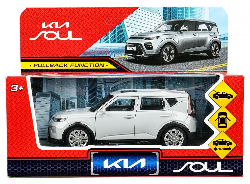 - Машина металлическая SOUL-12-SR KIA soul длина 12 см, двери, багаж., инерц, серебряный, кор.