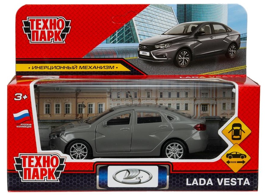 - Машина металлическая VESTA-12-DGR LADA vesta 11,5 см, двери, темно-серый, кор.