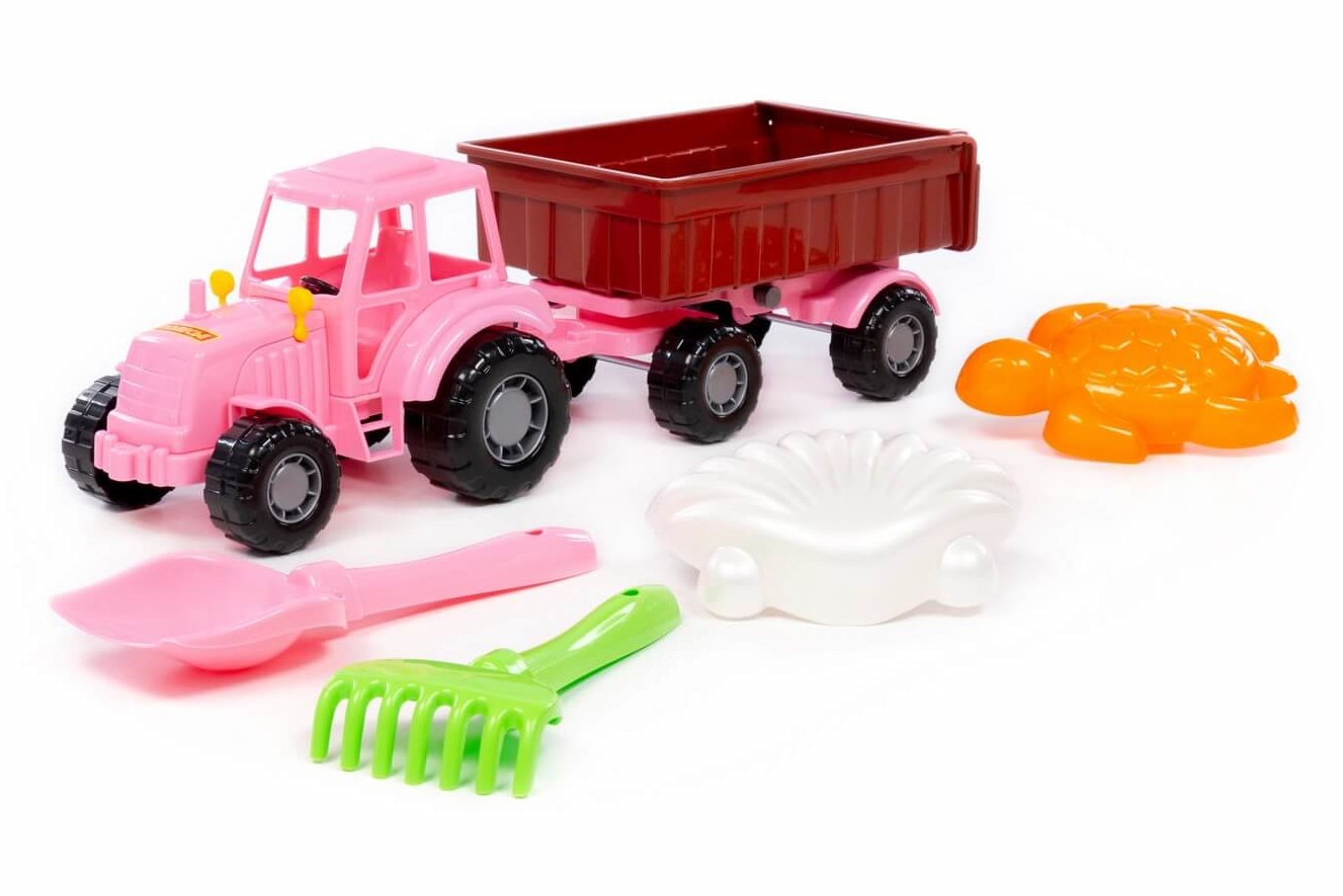 - Трактор 06920 Мастер, розовый + лопатка, грабельки, формочки