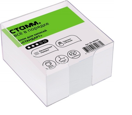 - Блок для записей СТАММ Б3-995101 "Стандарт", 9*9*4,5см, пластиковый бокс, белый
