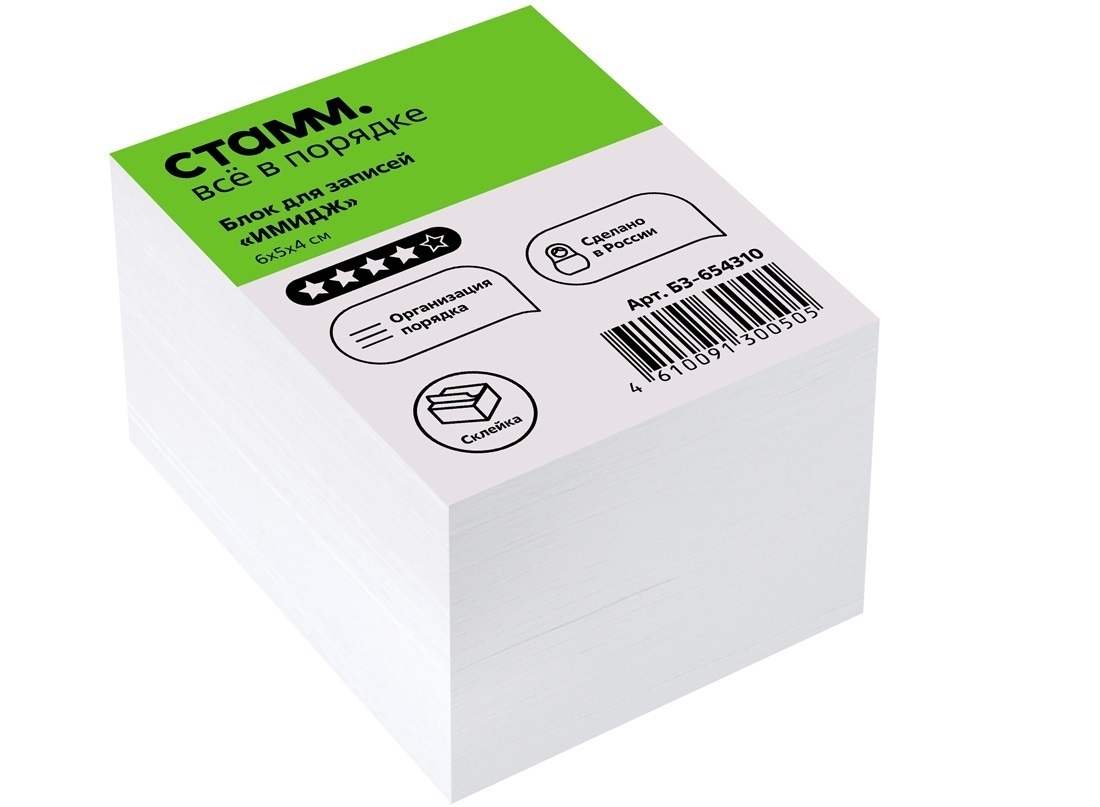 - Блок для записей СТАММ Б3-654310 на склейке "Имидж", 6*5*4см, белый