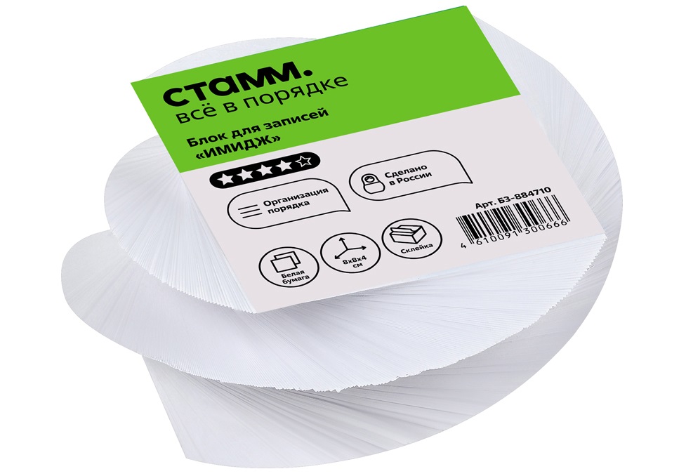 - Блок для записей СТАММ Б3-884710 на склейке "Имидж", 8*8*4см, витой, белый