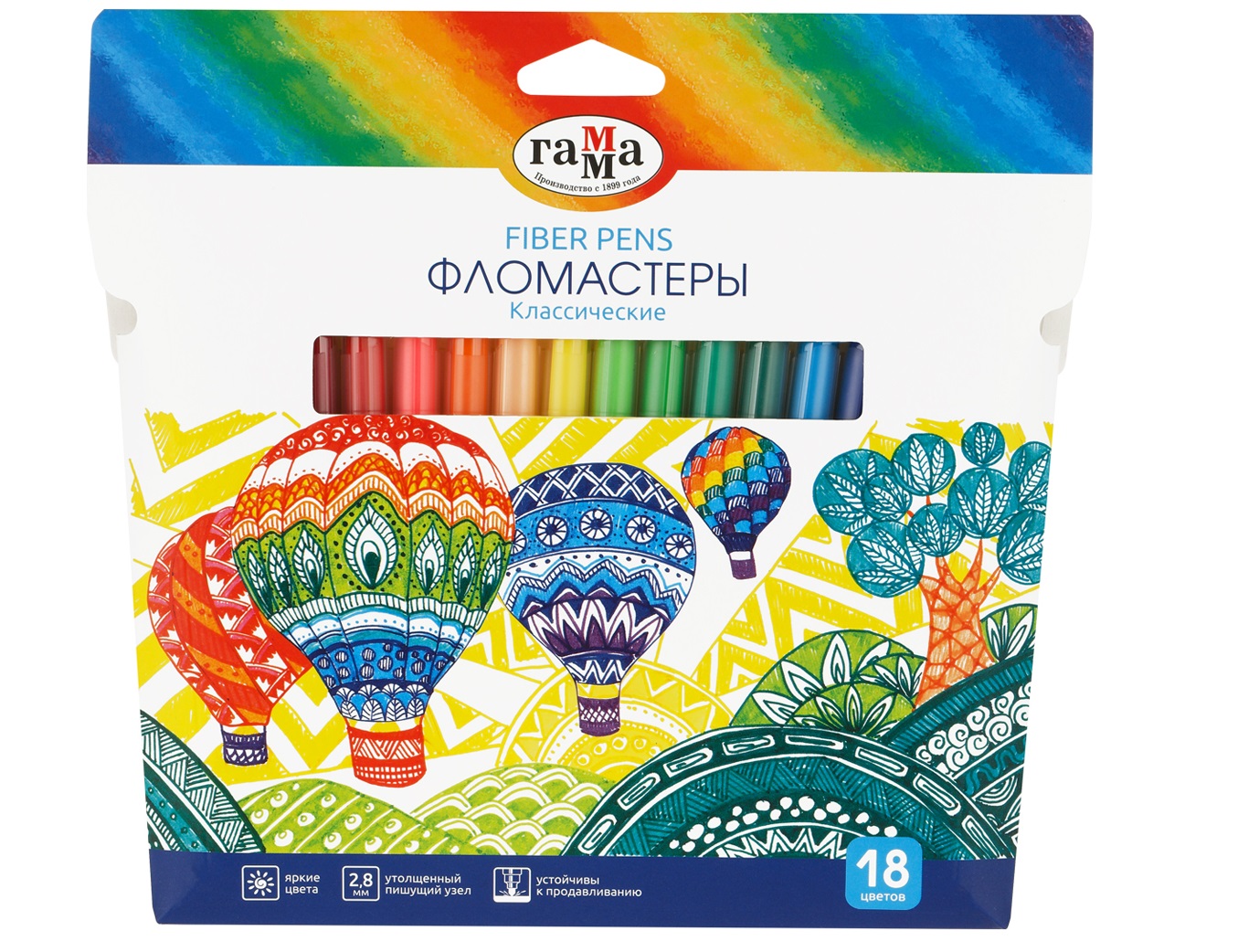 - Фломастеры 18цв. Гамма 130822_18 "Классические", смываемые, карт.упак. европодвес