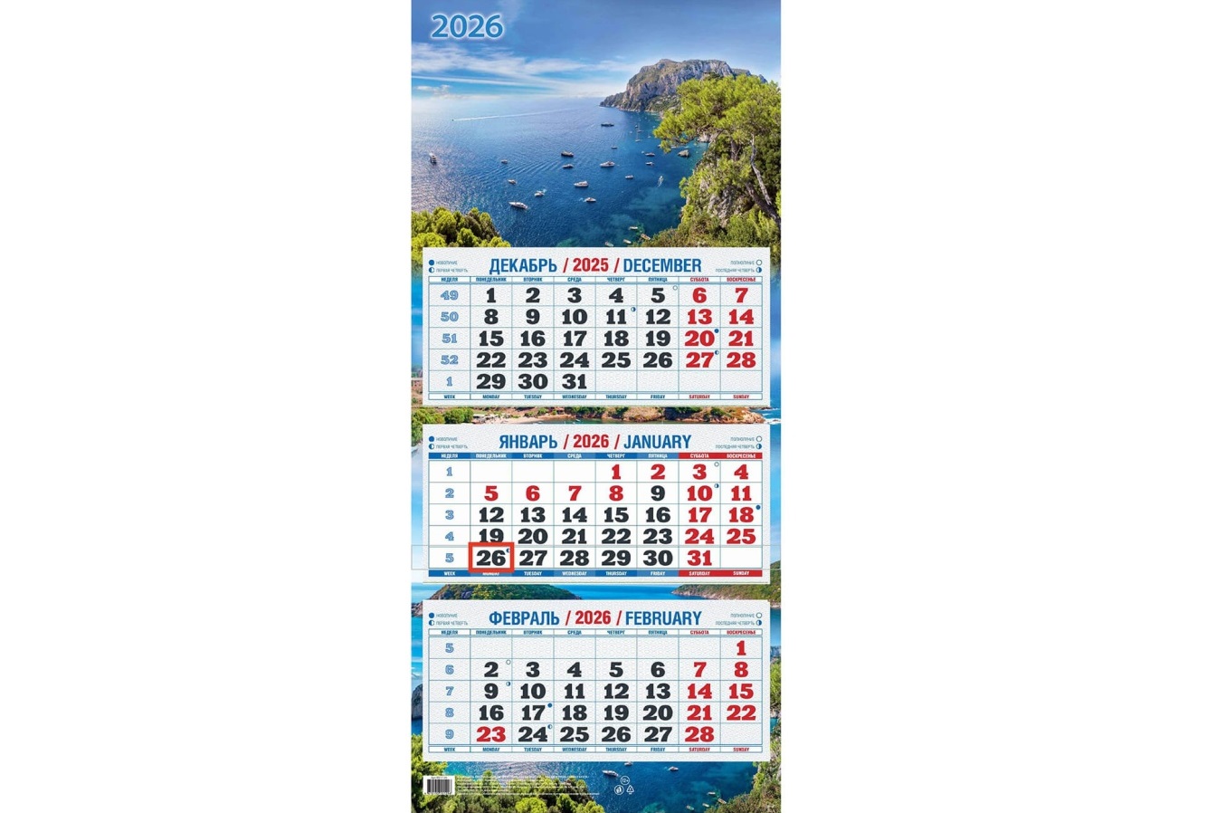 - Календарь квартальный 2026г. КБ17-26 Тихая бухта 310*680мм