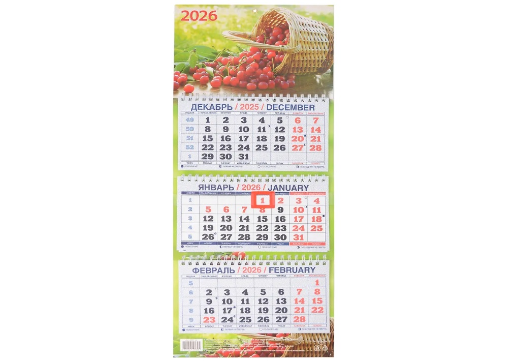 - Календарь квартальный 2026г. КМ07-26 Спелая вишня 195*465мм