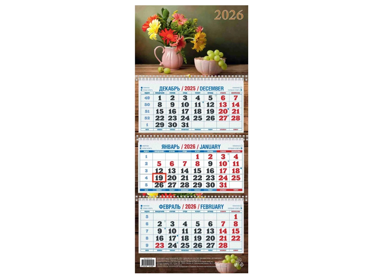 - Календарь квартальный 2026г. КМ10-26 Летний букет 195*465мм