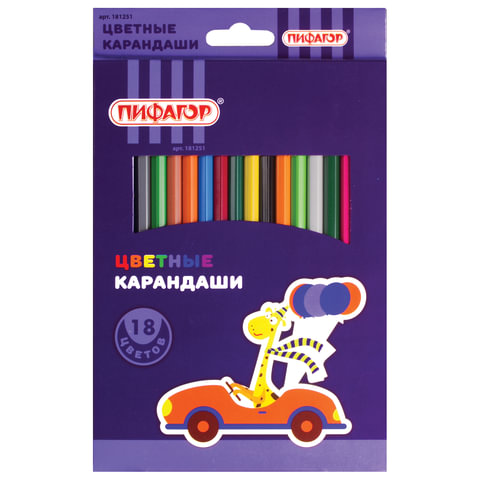 - Карандаши цветные 12цв. ПИФАГОР 181250 "ЖИРАФ", пластиковые, классические заточенные
