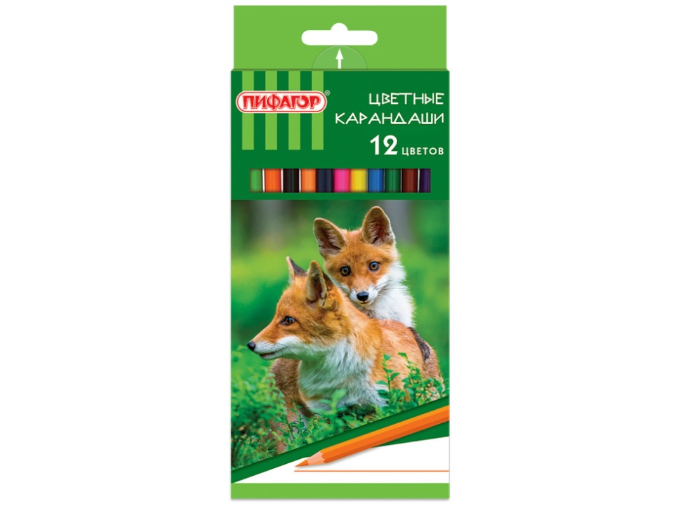 - Карандаши цветные 12цв. ПИФАГОР 181334 "ЛЕСНЫЕ ЖИТЕЛИ" шестигранные