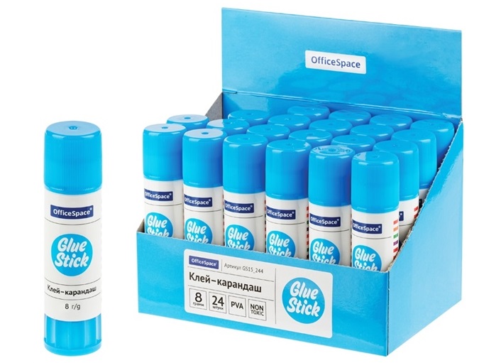 - Клей-карандаш 8г. OfficeSpace GS08_243_12 дисплей, ПВА