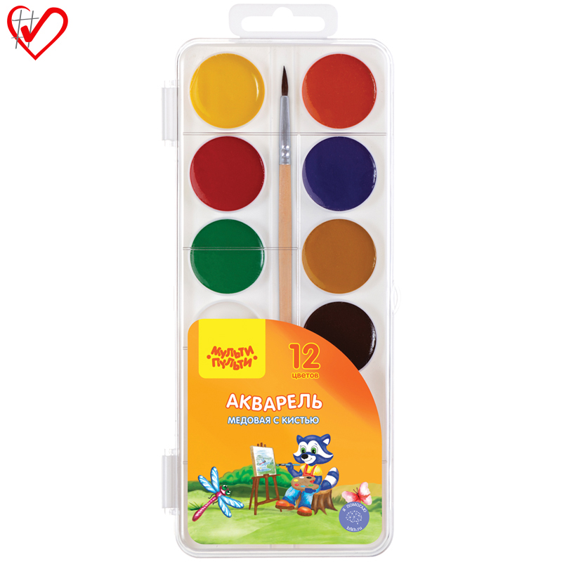 - Краски 12цв. Мульти-Пульти АП_19710 Приключения Енота медовая, с кистью, пластик