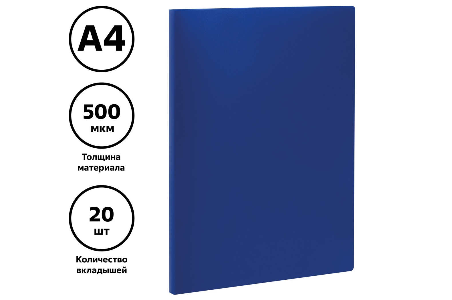 Папка 20 вкл. СТАММ ММ-32197 А4, 14мм, 500мкм, пластик, синяя