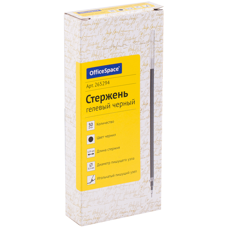 - Стержень гел. OfficeSpace 265294 черный, игольчатый наконечник, 129мм, 0,5мм