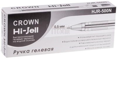 - Ручка гел. Crown HJR-500N "Hi-Jell Needle" черная, 0,5мм, игольчатый стержень