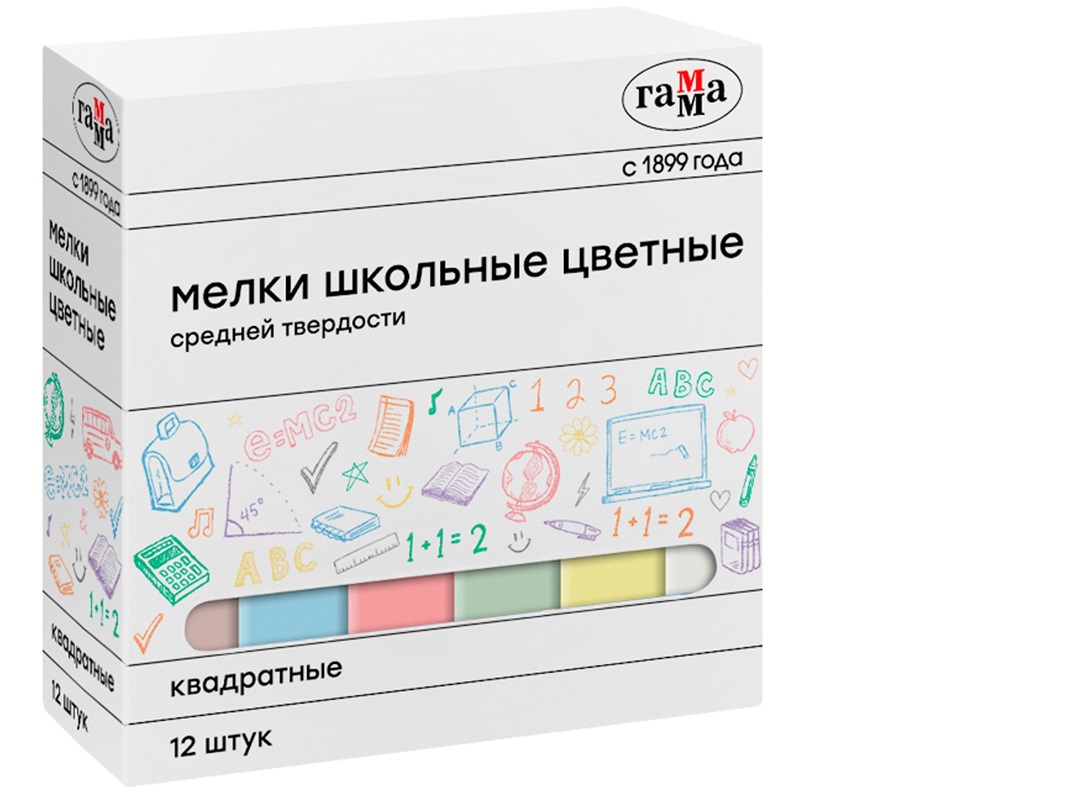 - Набор мелков шк. цв. 12цв. Гамма 30320213 средней твердости, квадратные, картонная коробка