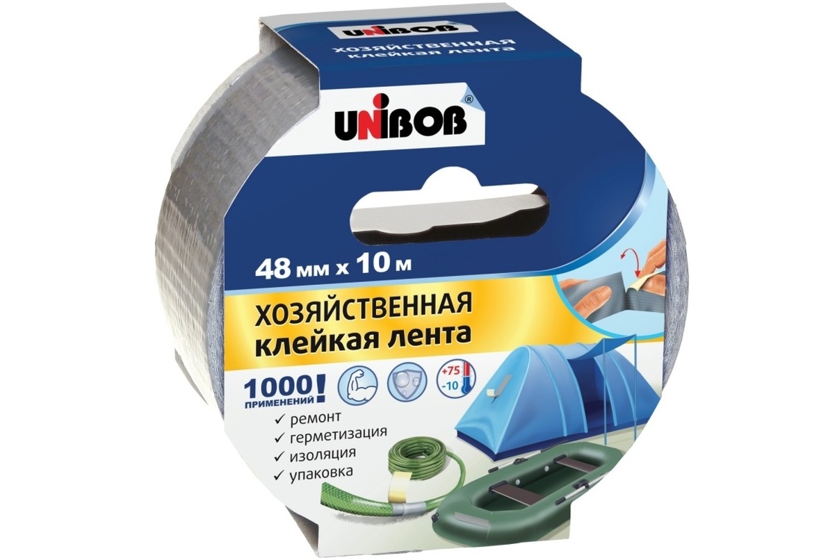- Скотч хозяйственный Unibob 44264 48мм*10м, серая, инд.упаковка