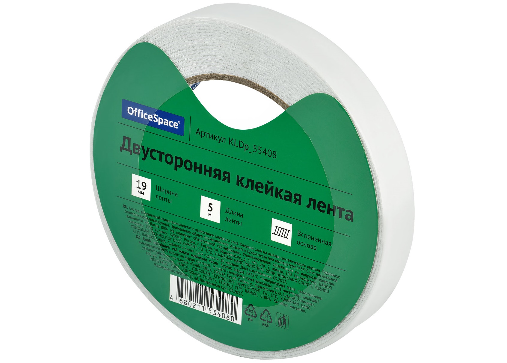 - Скотч 19*5 2-х сторонний OfficeSpace KLDp_55408 на вспененной основе, 1мм