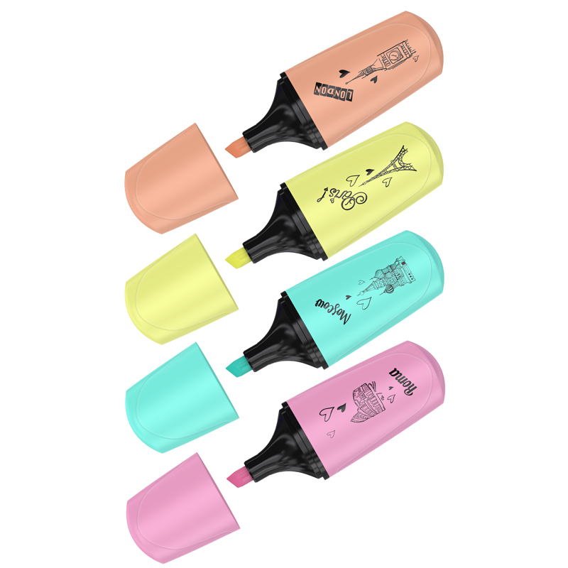 Набор текстмаркеров OfficeSpace HLp4_67109 04цв., пастельные цвета, 1-5мм, европодвес