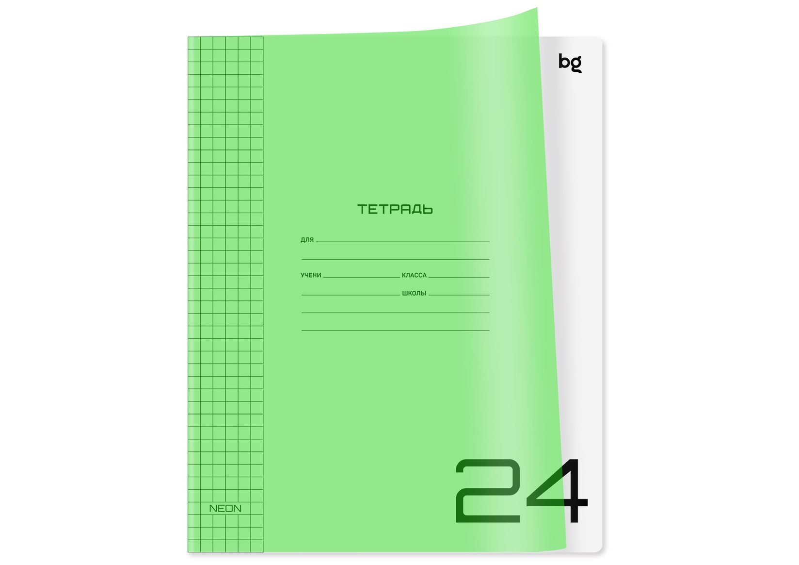 - Тетрадь 24л. клетка Т5ск24_пл 08958 "UniTone. Neon", пластиковая обложка, неон салатовый