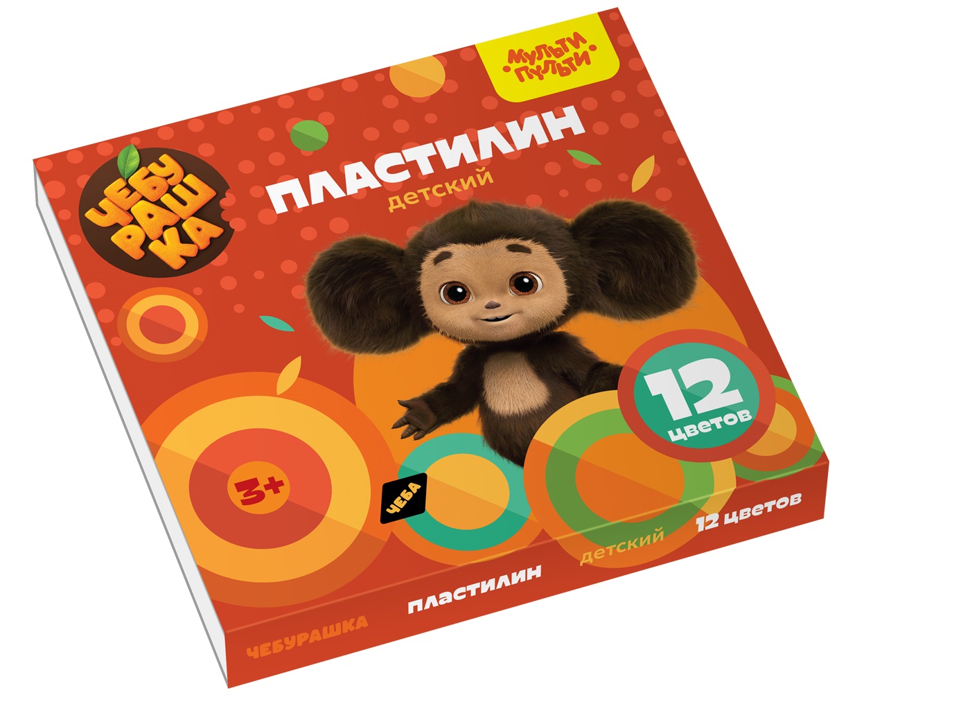 - Пластилин 12цв. ДПЧБ_53011 "Чебурашка", 180г, со стеком, картон