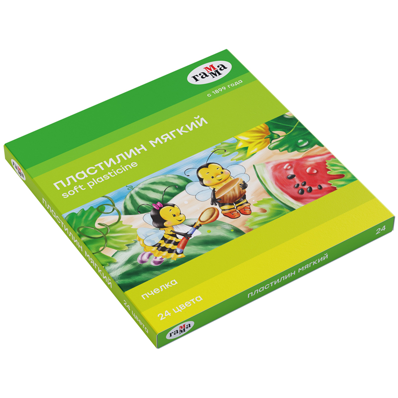 - Пластилин 24цв. Пчелка 190820201 восковой мягкий 360г, со стеком, картон. упак.