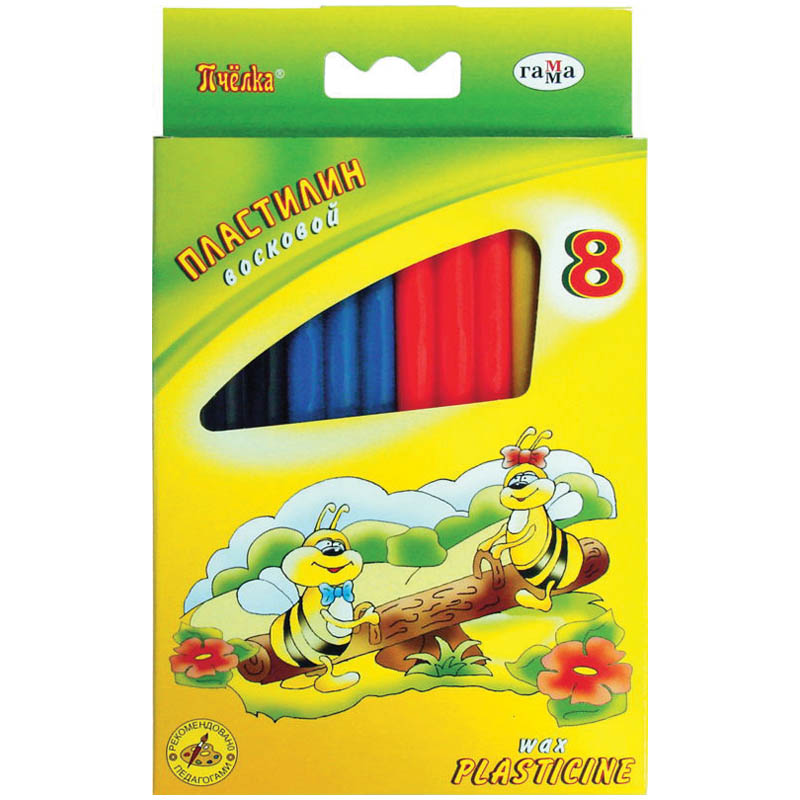 - Пластилин 8цв. Пчелка 280038/280038Н восковой