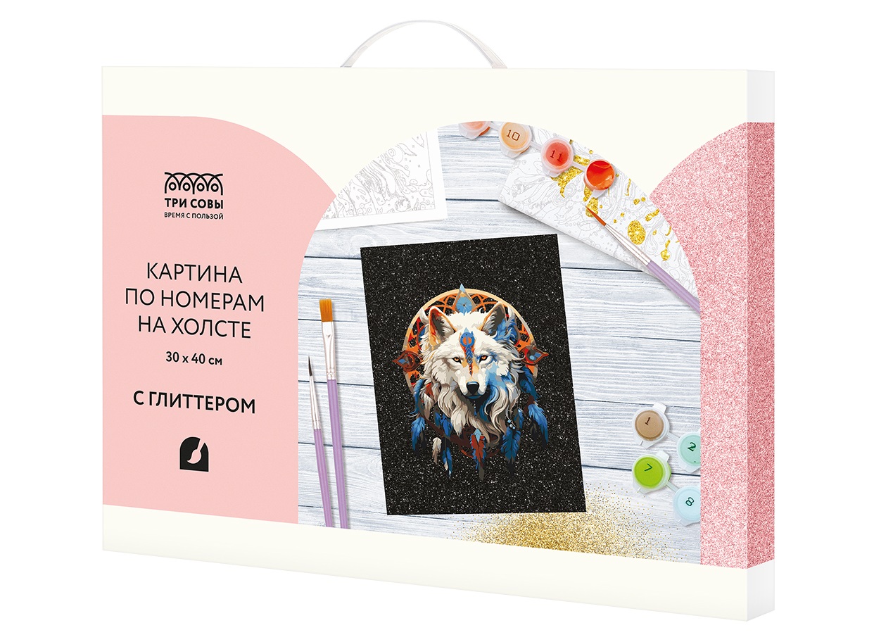 - Набор для раскрашивания по номерам ТРИ СОВЫ КХг3040_57051 с глиттером "Ловец снов", 30*40, с акриловыми красками и кистями