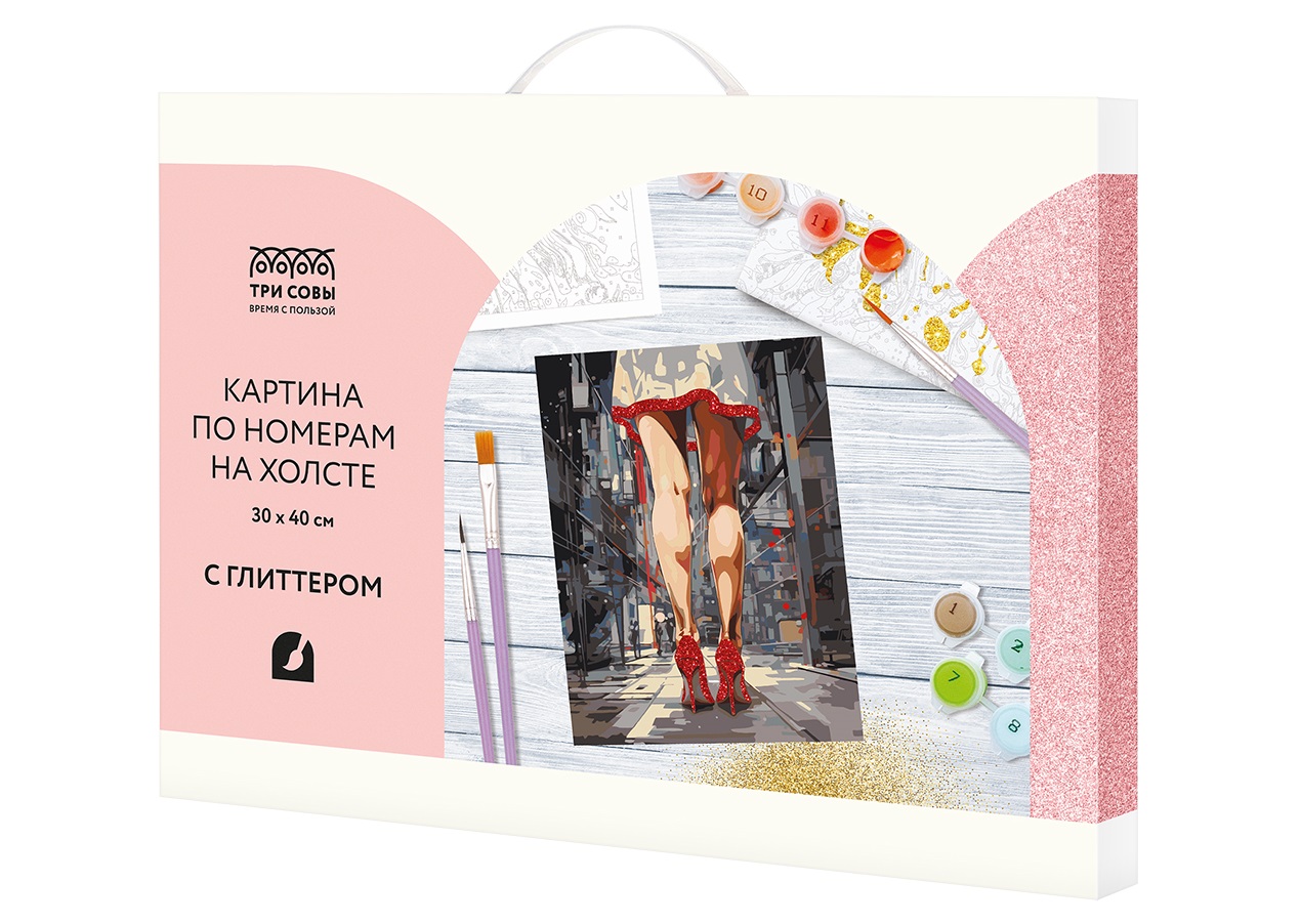 - Набор для раскрашивания по номерам ТРИ СОВЫ КХг3040_57056 с глиттером "Ритм города", 30*40, с акриловыми красками и кистями