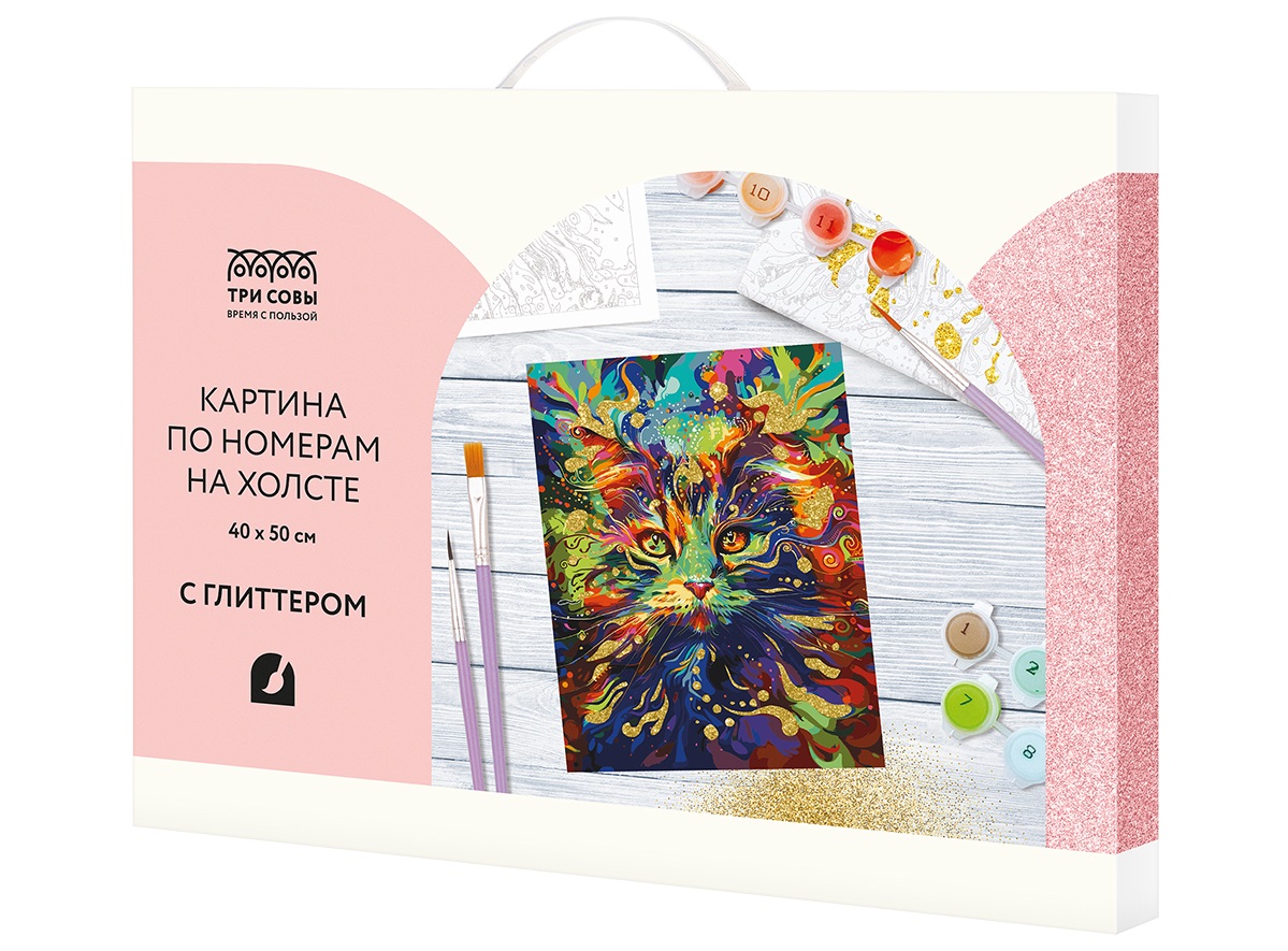 - Набор для раскрашивания по номерам ТРИ СОВЫ КХг4050_57061 с глиттером "Кот-холи", 40*50, с акриловыми красками и кистями