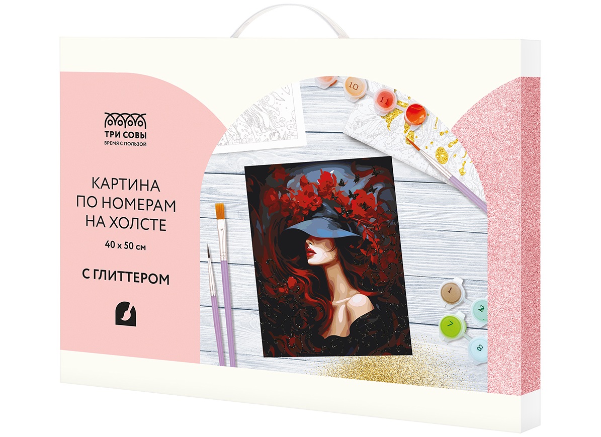 - Набор для раскрашивания по номерам ТРИ СОВЫ КХг4050_57063 с глиттером "Загадочность", 40*50, с акриловыми красками и кистями