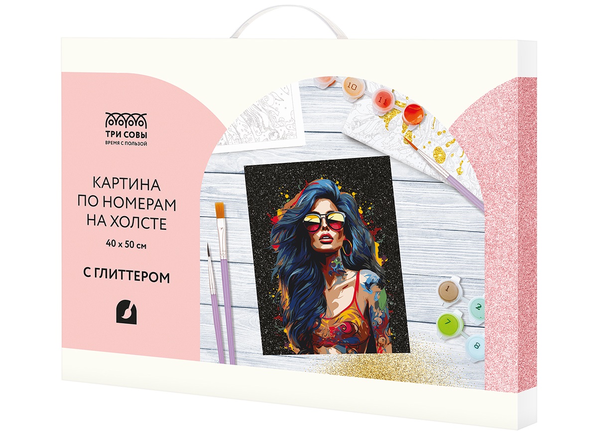 - Набор для раскрашивания по номерам ТРИ СОВЫ КХг4050_57066 с глиттером "Драйв", 40*50, с акриловыми красками и кистями
