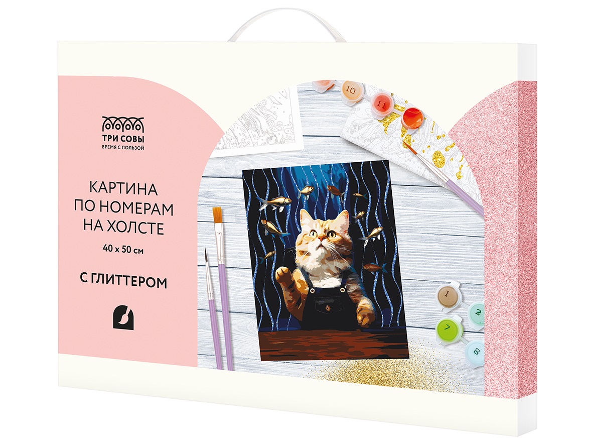 Набор для раскрашивания по номерам ТРИ СОВЫ КХг4050_57061 с глиттером "Кот-холи", 40*50, с акриловыми красками и кистями
