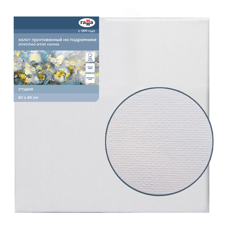 Холст на подрамнике Гамма 060220206 "Студия", 40*40 см, 100% хлопок, 280г/м2, мелкое зерно
