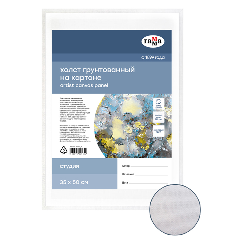 Холст на картоне Гамма 280818_08 "Студия", 35*50см, 100% хлопок, 280г/м2, мелкое зерно
