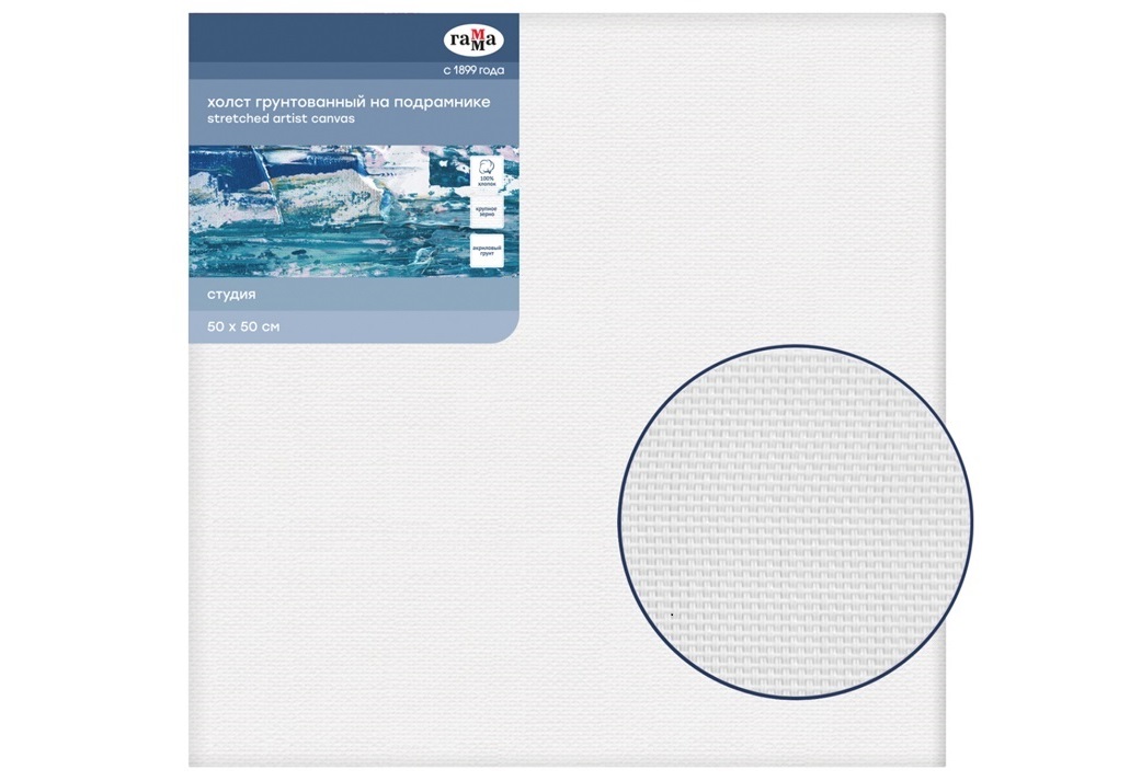 - Холст на подрамнике Гамма 301020208 "Студия", 50*50см, 100% хлопок, 400г/м2, крупное зерно