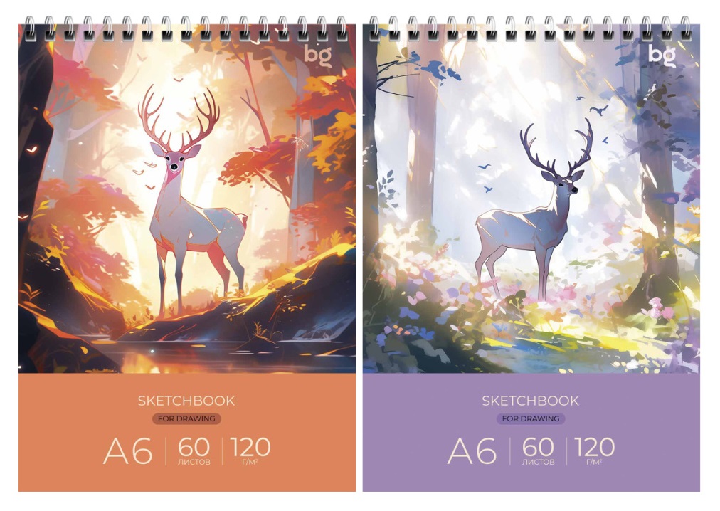 - Скетчбук BG СА560гр_61990 "Сказочный олень", 60л., А6 на гребне, глянцевая ламинация, 120г/м2